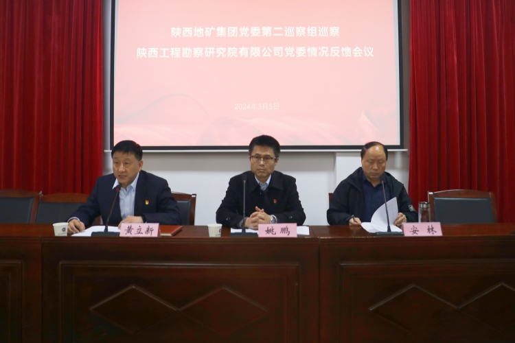 按照集團(tuán)公司黨委巡察工作統(tǒng)一安排部署,3月5日上午,集團(tuán)公司黨委第二巡察組來到陜西工勘院召開巡察情況反饋會。集團(tuán)公司黨委巡察辦主任姚鵬同志出席并講話。集團(tuán)公司第二巡察組組長安林同志代表巡察組反饋巡察情況。陜西工勘院黨委書記、執(zhí)行董事、總經(jīng)理黃立新主持會議并作表態(tài)發(fā)言。公司領(lǐng)導(dǎo)班子成員、中層干部和部分職工代表40余人參加會議。